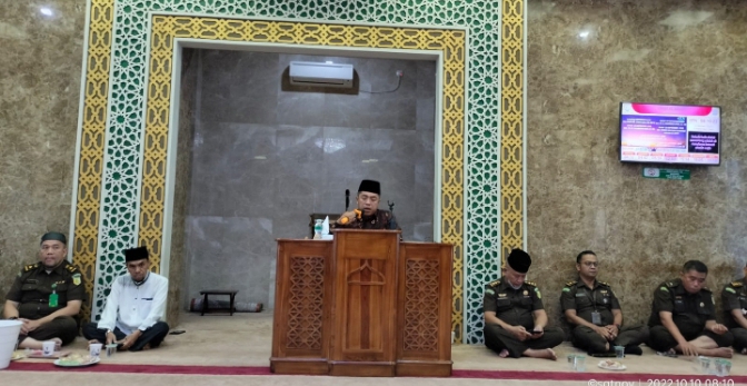 Pekanbaru – Bertempat di Masjid Al- Mizan, Peringatan Maulid Nabi Muhammad SAW 1444 H/ 2022 Masehi, di Kejaksaan Tinggi Riau yang disampaikan oleh Ustadz H. Marhalim S.Ag.