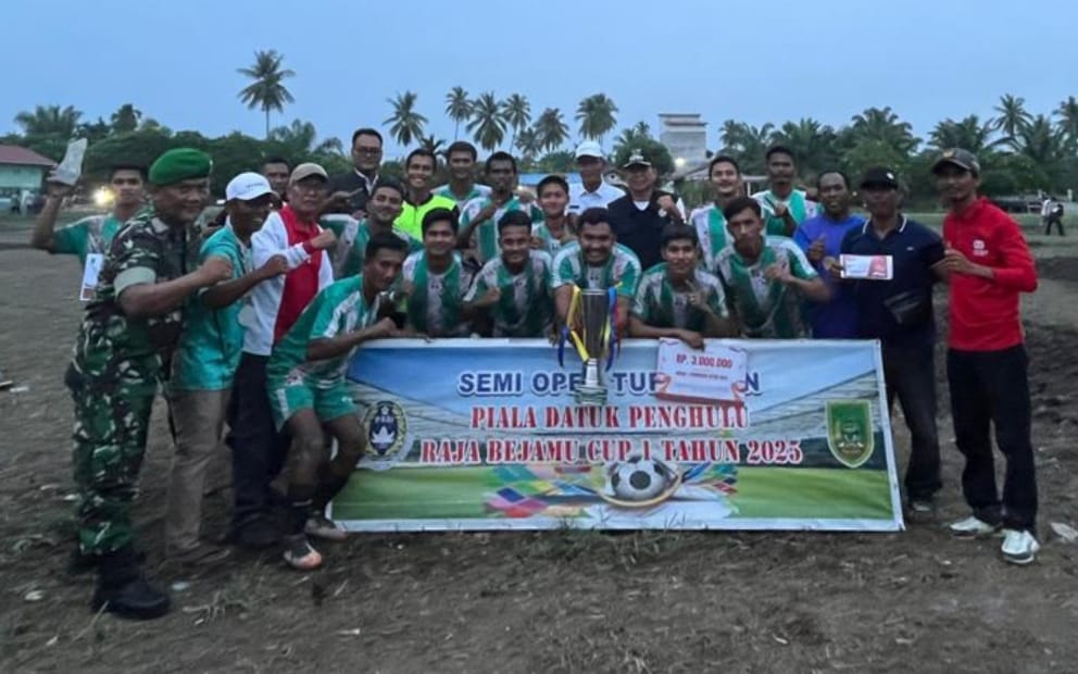 Untuk di ketahui dari 13 regu yang bertanding pada kejuaraan Semi Open Turnamen piala Datuk Penghulu Raja Bejamu CUP 1 Tahun 2025 yang diadakan dilapangan bola kaki Kepenghuluan Raja Bejamu adapun yang tampil gemilang Juara 1 yaitu tim Tarik Tunai.
