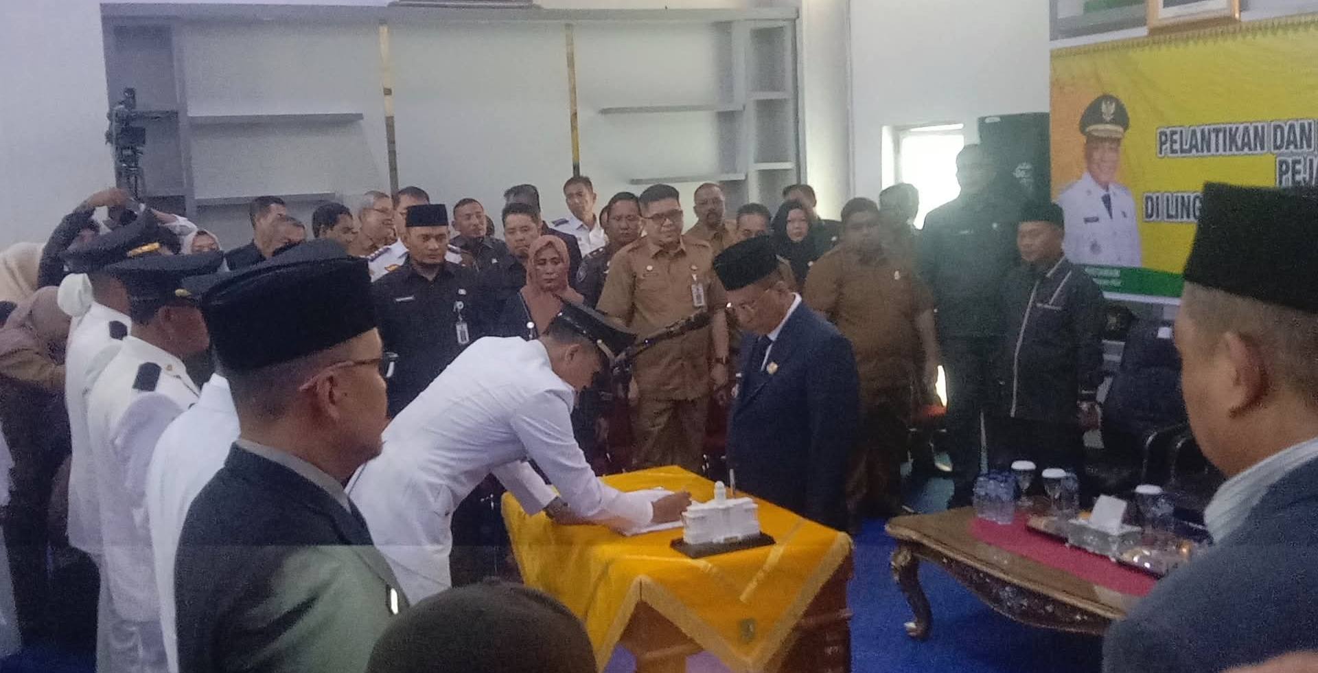 Pelantikan yang diselenggarakan dilantai 8 Kantor Bupati Senin (13/10/2205) ini dihadiri oleh Wabup Rohil Jhoni Charles, para Kepala OPD, Para Forkopimda, Para Kabid, Kasi dan sejumlah tokoh masyarakat.