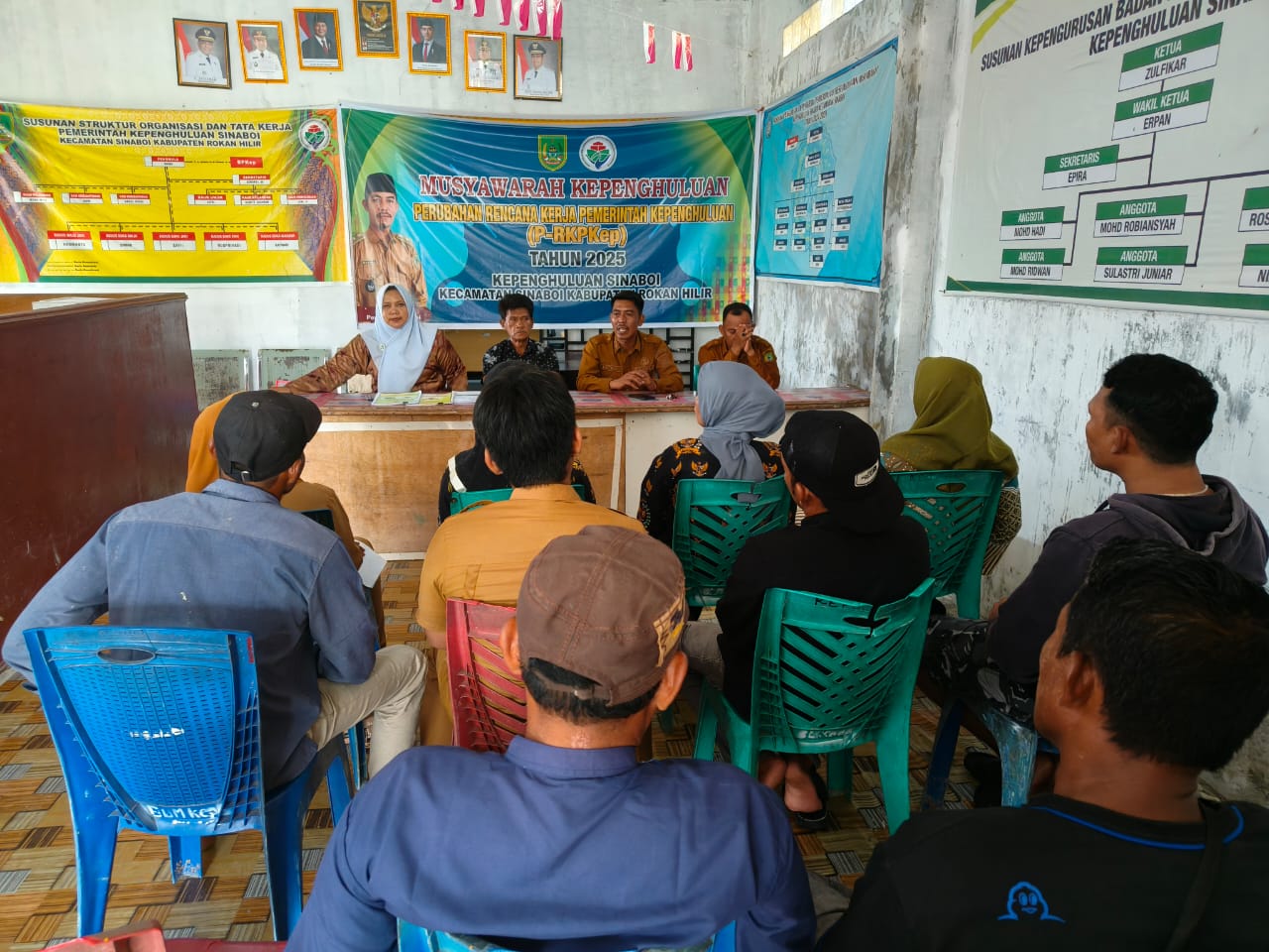 Musyawarah yang dihadiri oleh Datuk Penghulu Sinaboi Rafika, Sekdes Sunardi, S.E., Para perangkat kepenghuluan Sinaboi yang terdiri dari Kaur Pemerintahan Basri, Kaur Keuangan Nina Siahaan, dan staf kepenghuluan.
