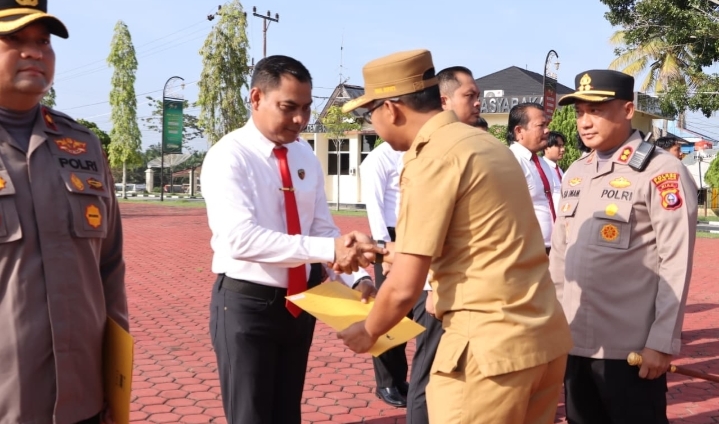 Ujung Tanjung- Wakil Bupati Jhoni Charles memberikan penghargaan kepada Personil Sat Narkoba dan Polsek Bangko Polres Rokan Hilir yang berprestasi atas pengungkapan Kasus Narkotika jenis sabu sebanyak 79.970 Kg di tahun 2025.