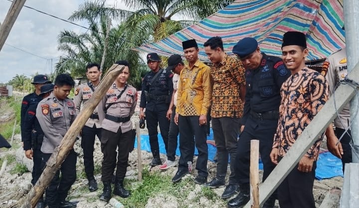 Rokan Hilir- Camat Sinaboi, Andri Munawar, S.STP, MSi., Kamis (29/01/2026) menghadiri kegiatan pemancangan tongkat pertama pembangunan jembatan oleh Polri di Kampung Aman Kepenghuluan Sungai Bakau.