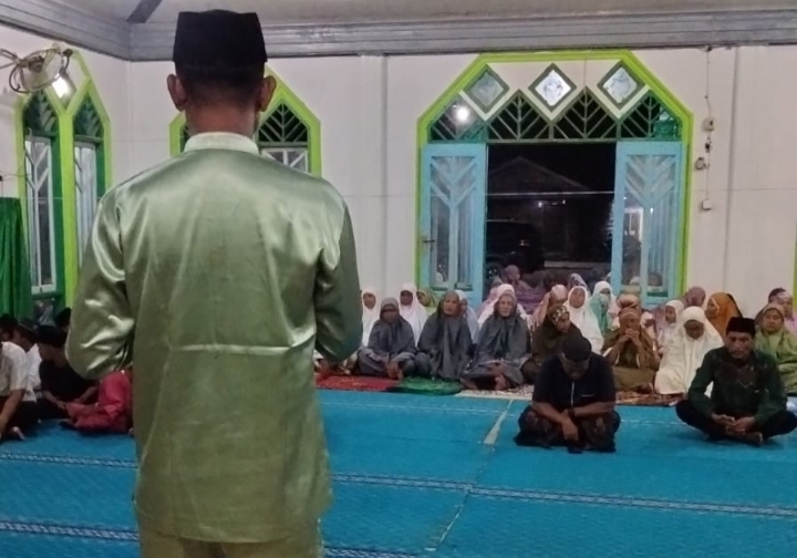 Sinaboi- Penghulu Sinaboi Rafika, memberikan tausiah dan arahan di malam pertama bulan suci Ramadhan 1447 H di Mesjid As-Syuhada Sinaboi. Rabu (18/2/2026)