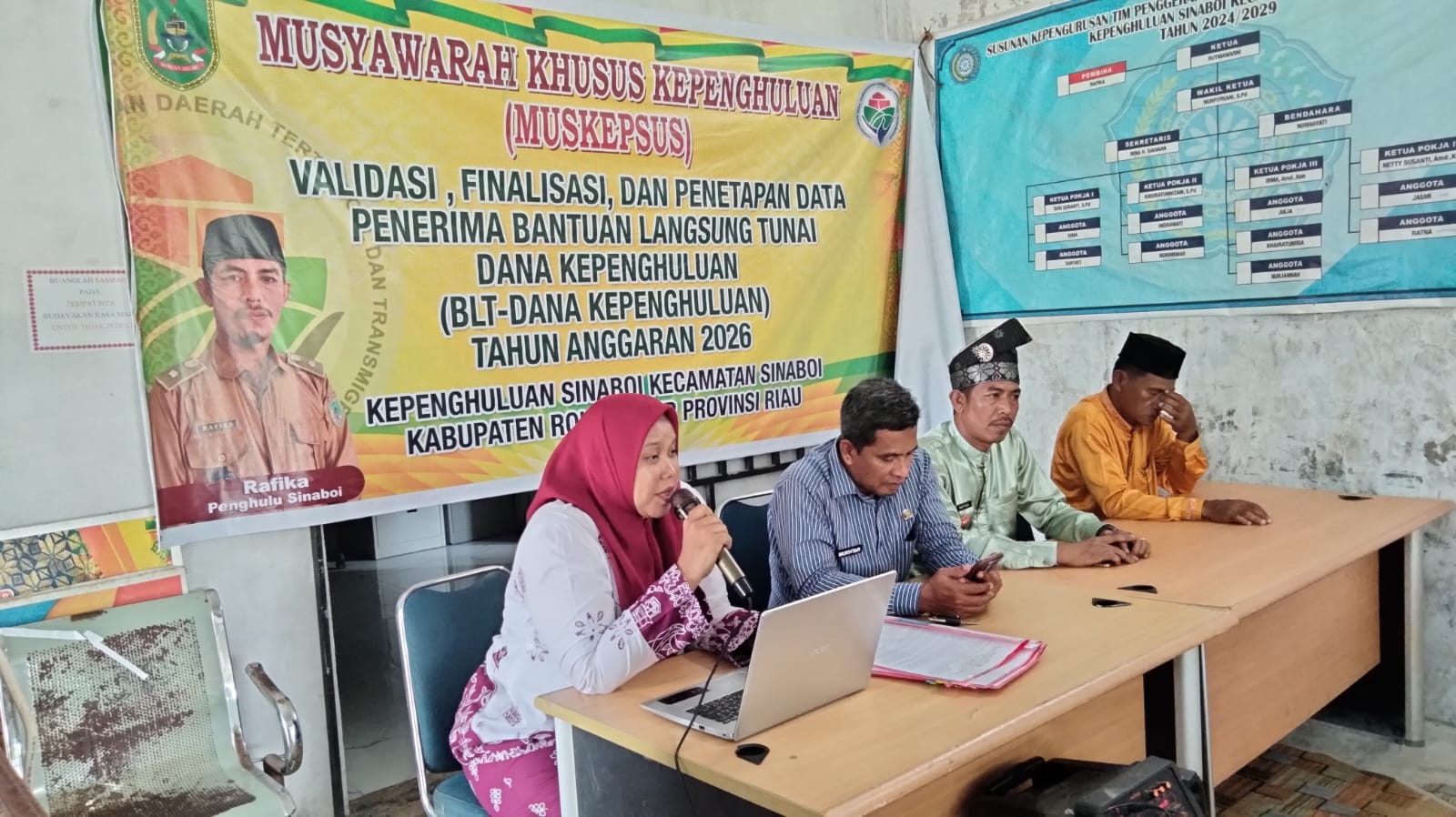 Musyawarah yang di selenggarakan di kantor Kepenghuluan Sinaboi Jumat (6/30/2026) ini bertujuan untuk membahas dan menetapkan rencana kerja Pemerintahan Kepenghuluan untuk tahun 2026.