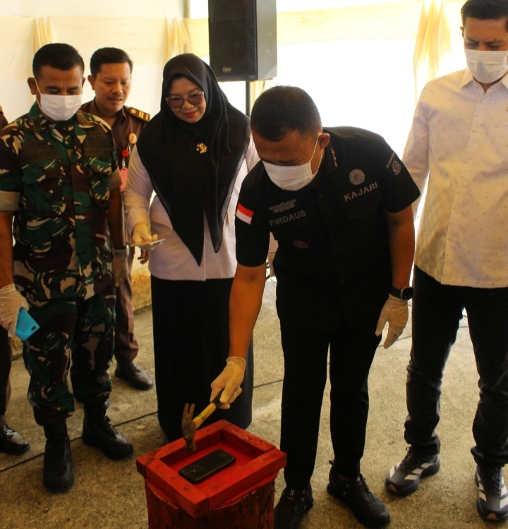 Kajari Rohil  Firdaus, S.H., M.Hum., M.M., M.I.Kom.tampak sedang melakukan pemusnahan barang Bukti yang telah Berkekuatan Hukum Tetap (Inkracht Van Gewijsde) (f: Hendri)